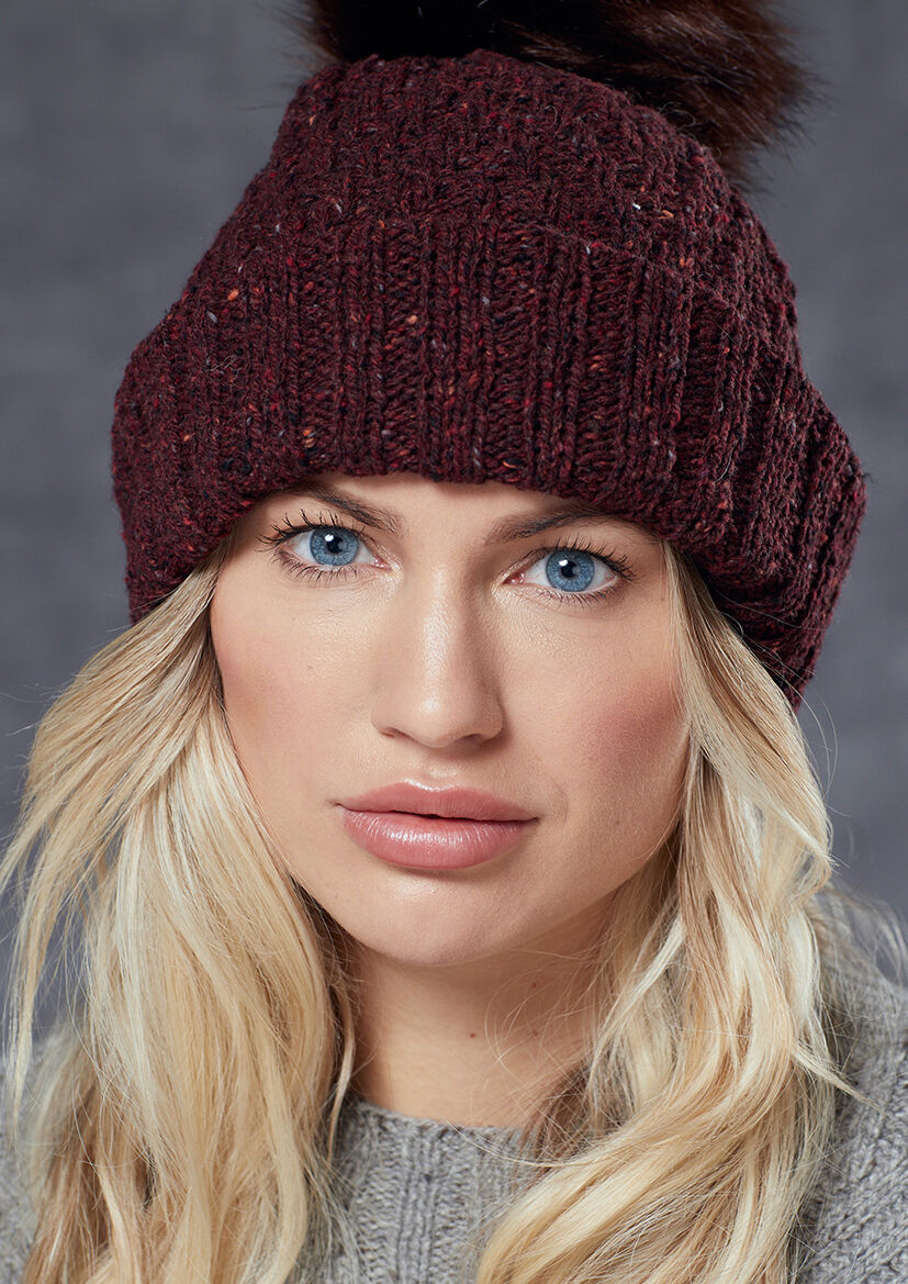 This hat is the perfect winter accessory and features a wide brim and matching pom pom. It was designed by Quail Studio and is knitted in one shade of Cashmere Tweed, a soft blend of 80% wool and 20% cashmere.
