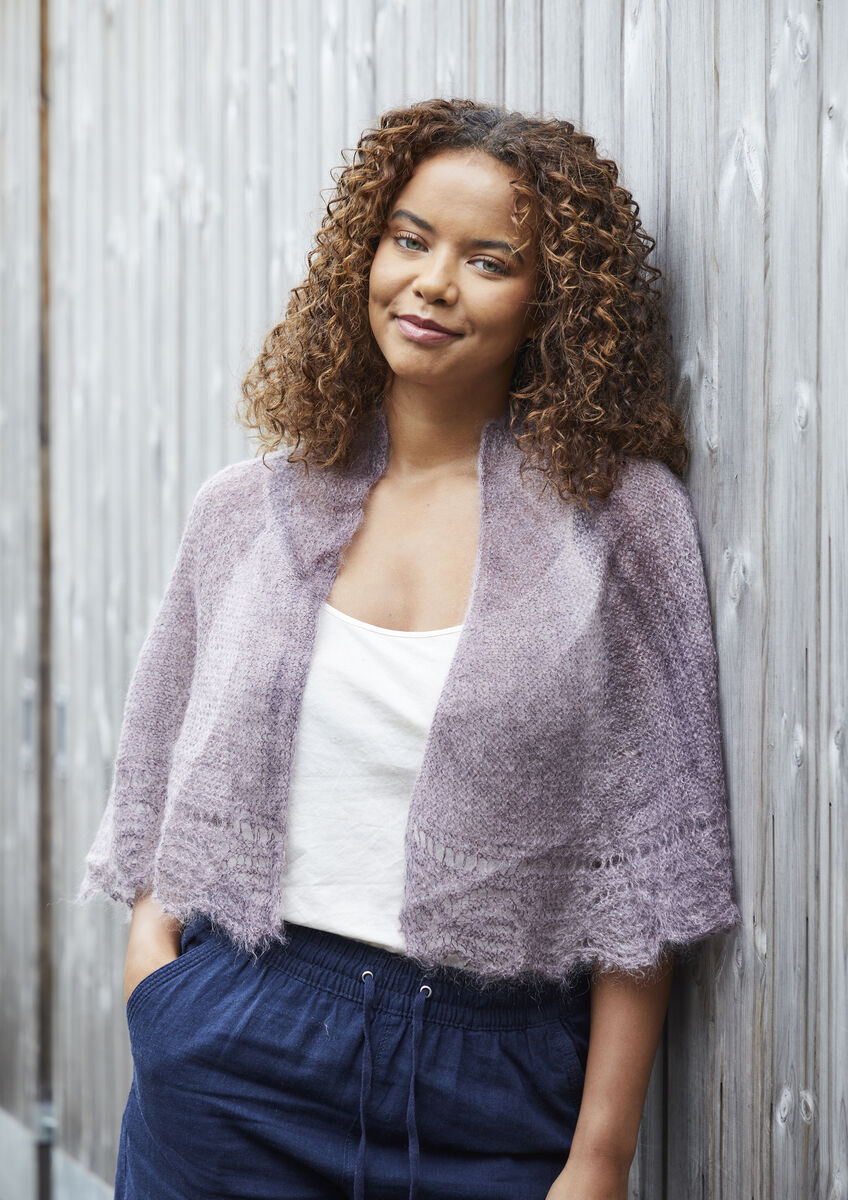 Cette jolie écharpe de Georgia Farrell a été présentée à l'origine dans la collection Kidsilk Haze Accessories. Ici, elle a été réimaginée en utilisant le fil jumeau Kidsilk Haze Colour. Le délicat lavis de couleur met superbement en valeur la texture en m end et en m env caractéristique de Georgia, et les panneaux en relief sont soigneusement bordés au point mousse. L'écharpe est réalisée avec une seule pelote de Kidsilk Haze Colour tricotée en double.