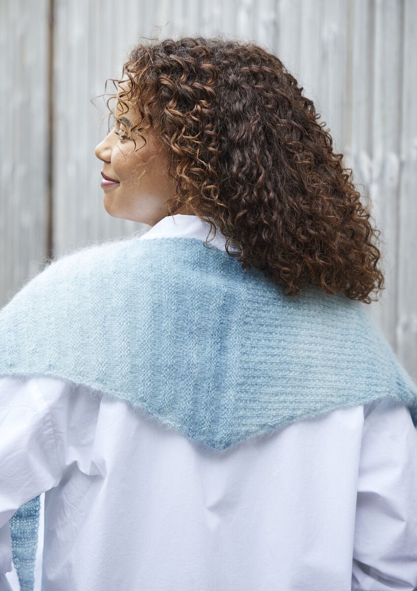 Dieser süße Schal von Georgia Farrell stammt ursprünglich aus der Kidsilk Haze Accessories Kollektion. Hier wurde er mit dem Schwestergarn Kidsilk Haze Colour neu interpretiert. Der sanfte Farbverlauf ist eine schöne Ergänzung zu Georgias typischer Rechts-Links-Struktur und die kontrastierenden Flächen sind mit einer Blende in kraus rechts eingefasst. Der Schal wird mit nur einem Knäuel Kidsilk Haze Colour gestrickt, das durchgehend mit doppeltem Faden gestrickt wird.