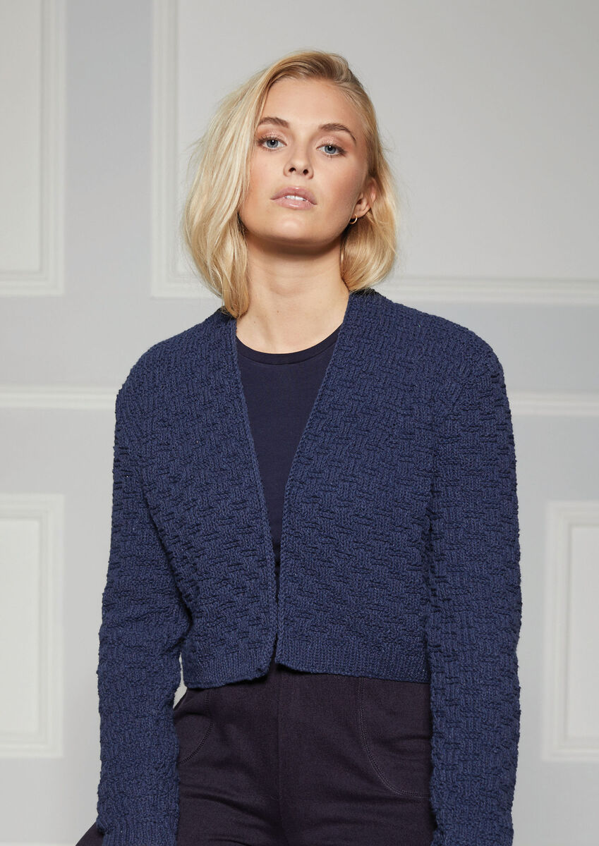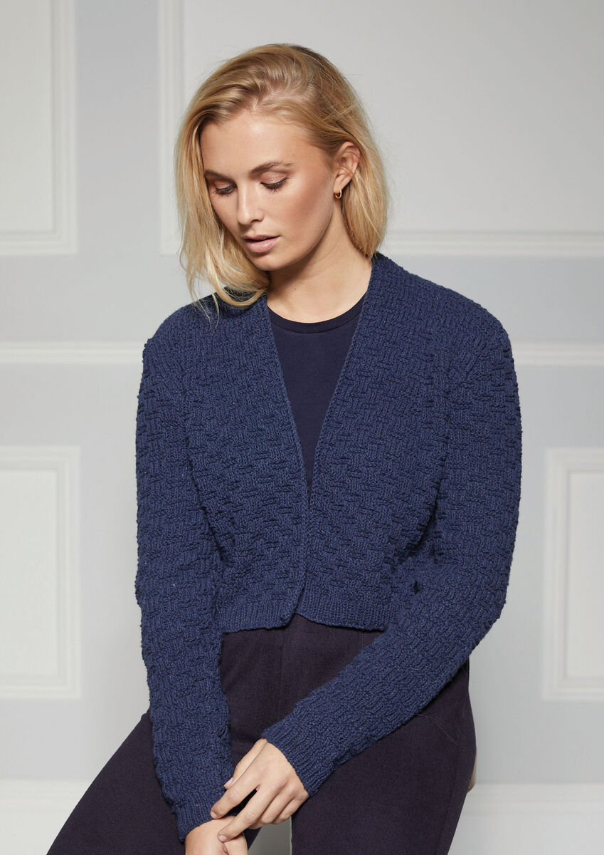 Knit a boxy cardigan in a simple texture stitch that's easy to memorise. The waist-length, v neck and set-in sleeves make this a flattering option for smarter outfits too.