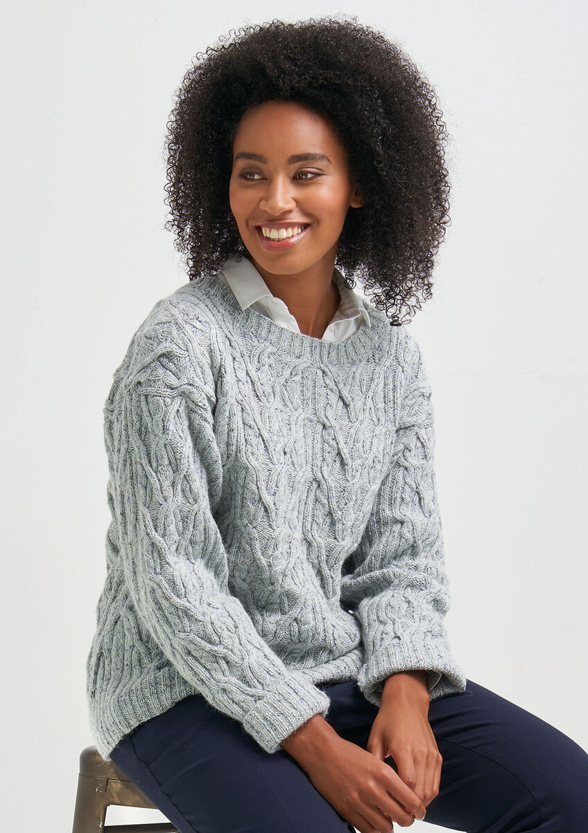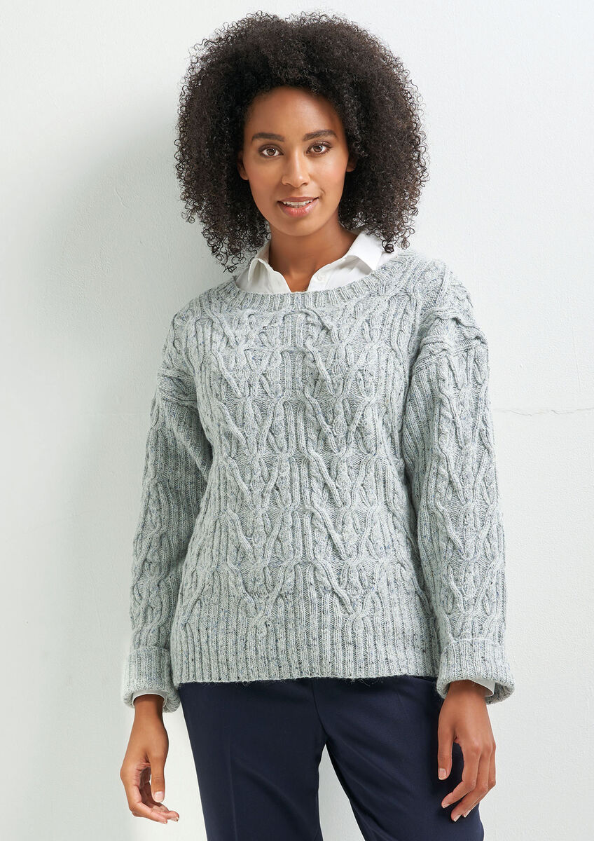 Beautiful cables adorn this stylish wide-neck sweater by Quail Studio. The relaxed fit and drop shoulder keep the shape classic and easy to wear.