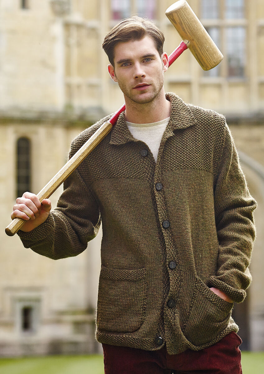 Knit this mans stocking and moss stitch cardigan from the Simple Shapes Pure Wool Worsted Collection, designed by Martin Storey using the divine yarn, Pure Wool Worsted (superwash wool). Knitted mostly in stocking stitch with moss stitch edgings and yoke, full-length set-in sleeves and patch pocket detail, this knitting pattern is suitable for the intermediate knitter.