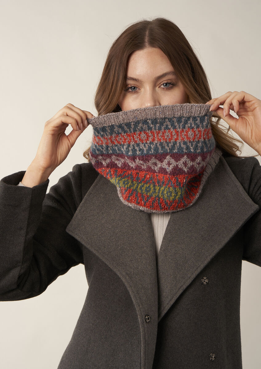 Inspired by Lisa Richardson’s popular sweater design of the same name, Bessie Cowl is the perfect way to add a pop of colour to a winter outfit.