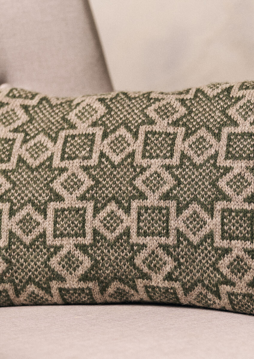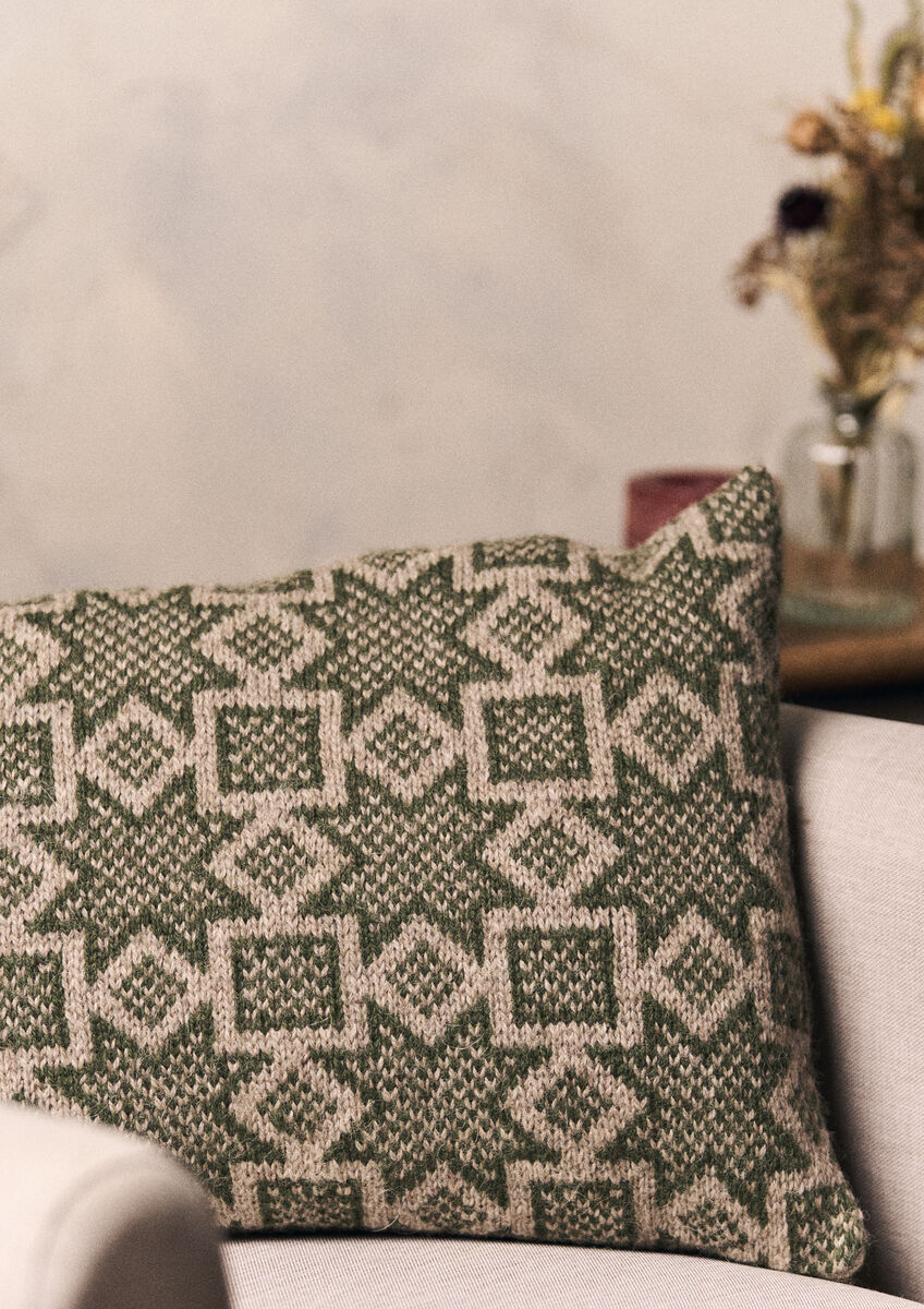 Inspired by the scarf of the same name, add a subtle festive touch with this beautiful Fair Isle cushion by Martin Storey. Knitted using two shades of Moordale, it features an all-over star motif pattern, a lovely addition to the festivities.