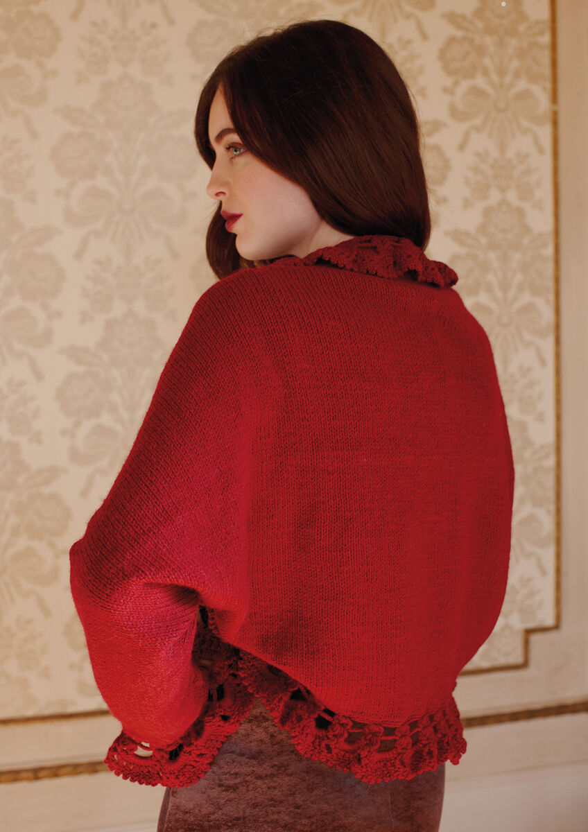 This beautiful shrug was designed by Marie Wallin and features an eye-catching crochet edging. It is worked in Alpaca Soft DK, a soft blend of 70% wool and 30% alpaca.