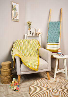 The Every Baby Blanket Collection is a cosy, comforting range of baby blankets made with our new Baby Cashsoft Worsted yarn. Designed for softness and warmth, each piece features gentle textures and playful colourwork that little ones will love. From calming neutrals to joyful brights, this collection offers something for every nursery.