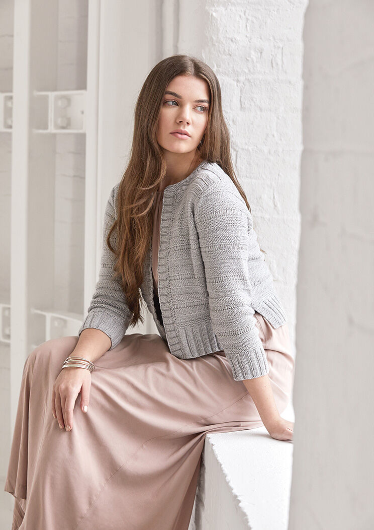 Knit this ladies cardigan from Flutter, a design by Kim Hargreaves using our versatile yarn Cotton Cashmere (cotton and cashmere.) This edge to edge cardigan has a textured stripe sequence and the pattern is suitable for average knitter.