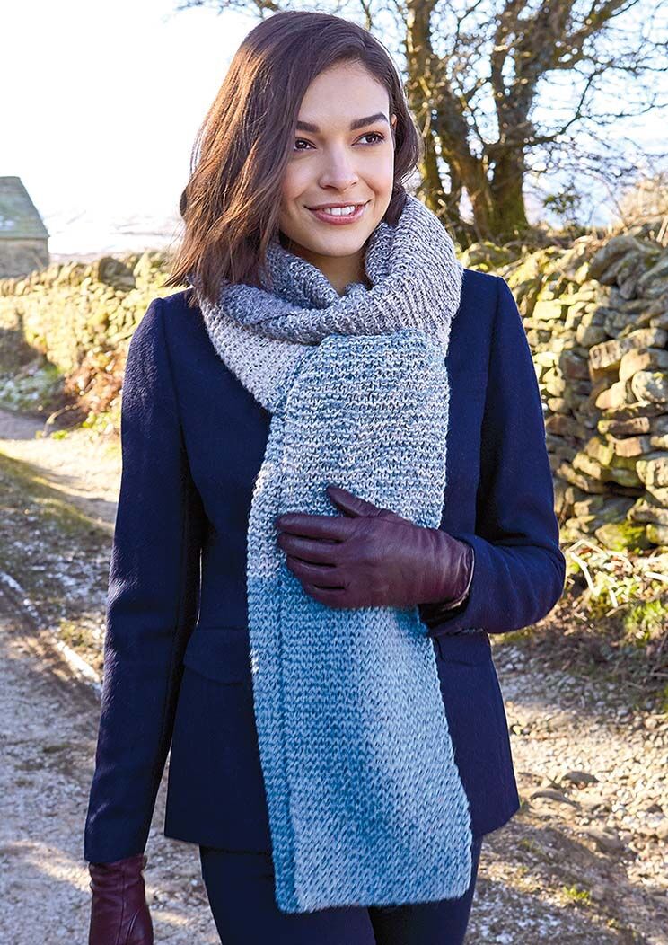 Knit this longer length accessory scarf, a design from Around Holme by Lisa Richardson using our beautiful tweed effect yarn Felted Tweed. With the yarn used double throughout and knitted in garter stitch, this pattern is suitable for the intermediate knitter.