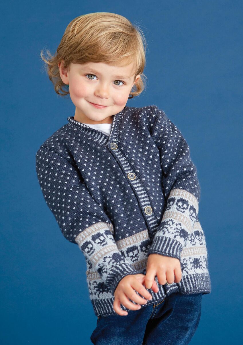 Channel some spooky vibes with a cardigan trimmed with skulls and spiders! Perfect for the budding rock star in your family, this design by Martin Story is worked in Baby Cashsoft Merino.