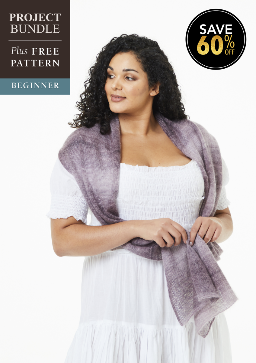 We’ve bundled up the yarn for Bea Wrap and the bundle is inclusive of a FREE pattern book.