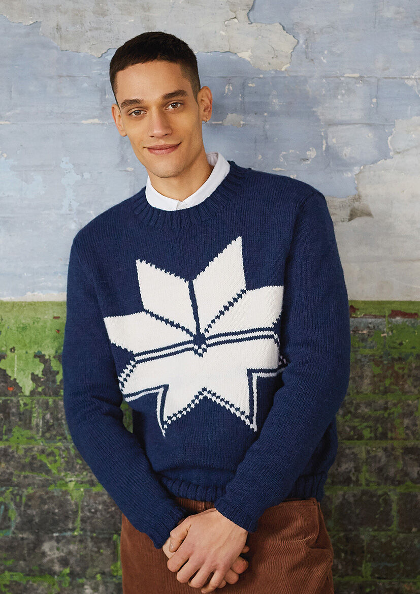This lovely sweater by ARNE & CARLOS features an eye-catching modern Scandinavian intarsia detail. It is knitted in two shades of our popular Alpaca Soft DK, a lovely blend of 70% virgin wool and 30% alpaca.