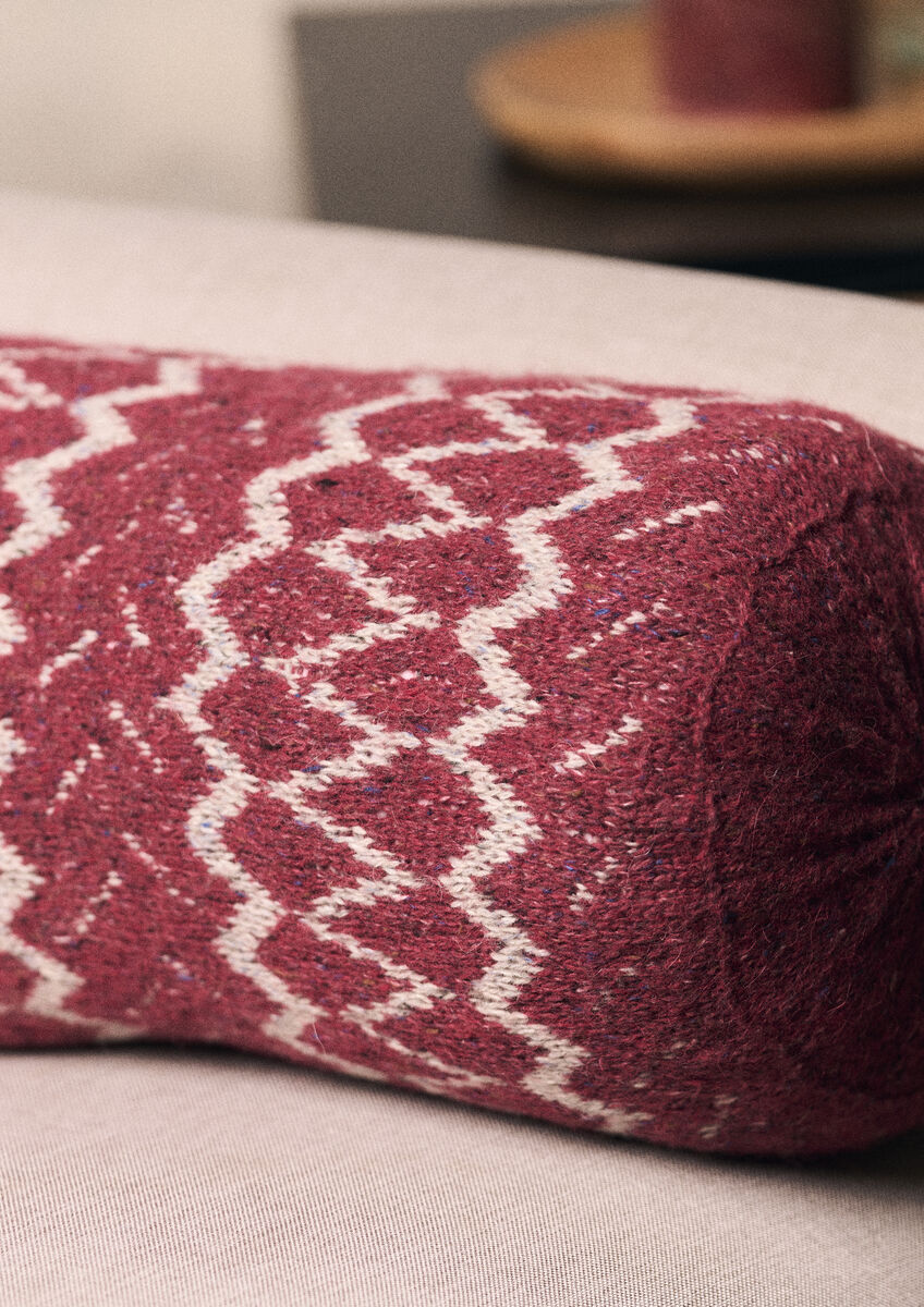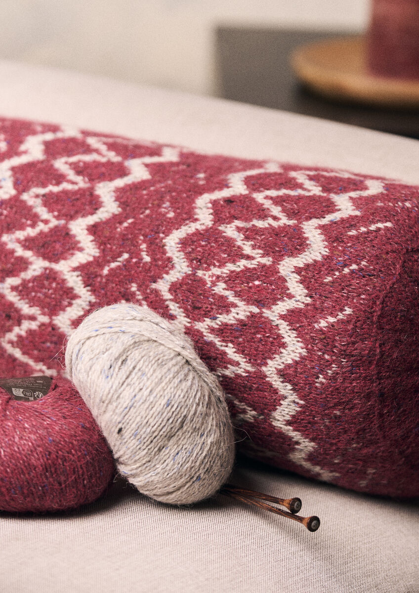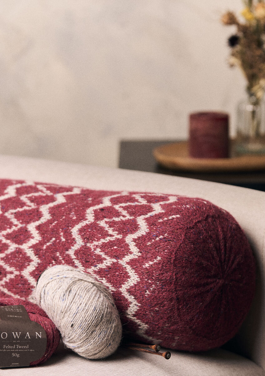 Inspired by the sweater of the same name, Georgia Farrell’s eye-catching bolster cushion is knitted using Felted Tweed. The two chosen shades ensure it will add a touch of traditional festive charm and comfort to your home over the holiday season.