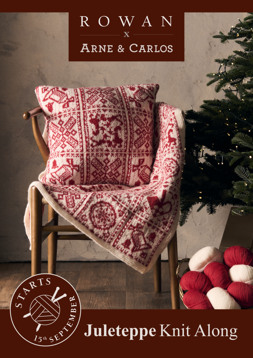 Juleteppe is knitted using Rowan Norwegian Wool and Noelie Colourway is a traditional palette of red and white, considered to be the true colours of a Norwegian Christmas.
