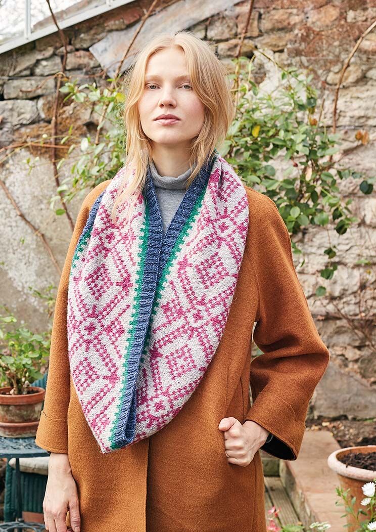 Knit this women's accessory scarf from New Nordic, a design by ARNE & CARLOS using our beautiful tweed effect yarn (wool, alpaca and viscose.) With a snowflake motif and contrasting edgings, this pattern is suitable for the intermediate knitter.