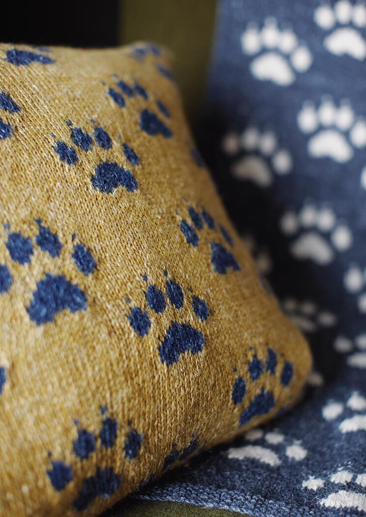 Knit this homeware cushion from Rowan at Home, a design by Martin Storey. With a cute paw print design on a contrasting background, this pattern is suitable for the more experienced knitter.
