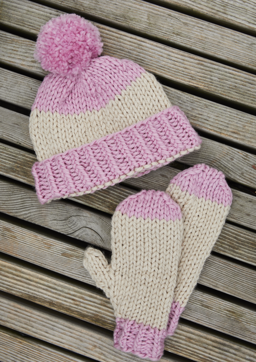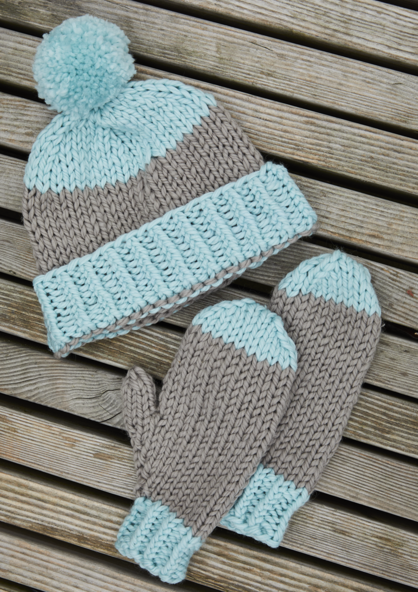 Warm and stylish, this chunky two-colour hat from Tiam Safari is worked in the round, using wonderfully warm Big Wool. Make a statement with this quick-to-knit accessory and its fun pom-pom detail.