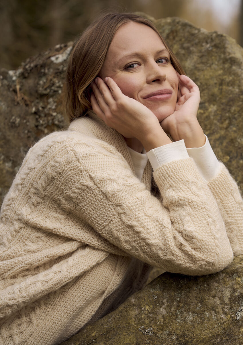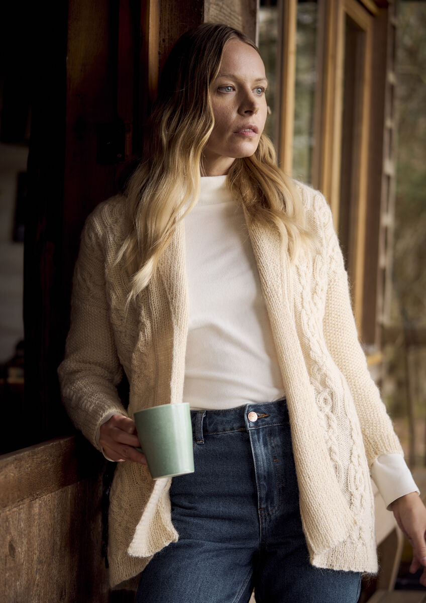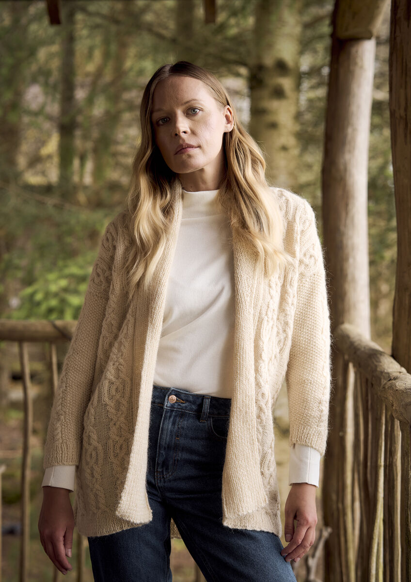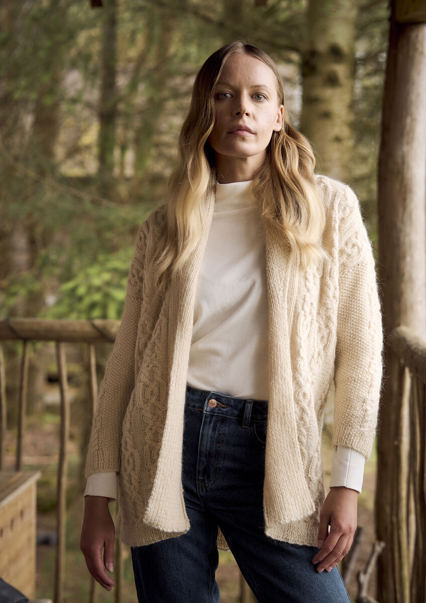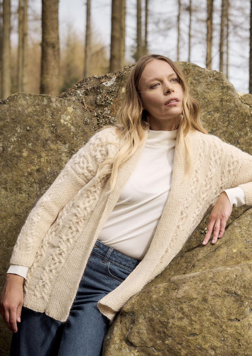 This classic cardigan by Quail Studio boasts beautiful panels of intricate cables. Knitted using Kid Classic, this textured knit is as cosy as it is stylish.