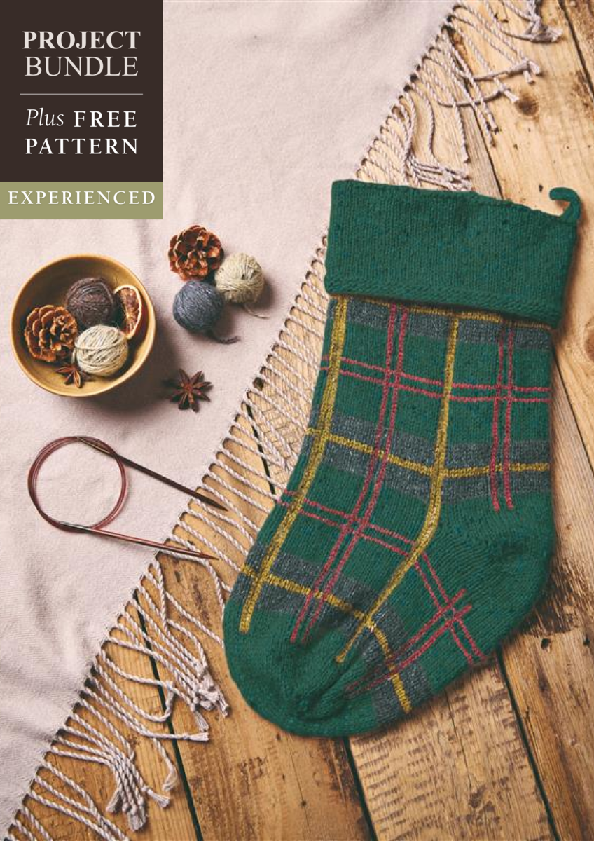 We’ve bundled up the yarn for Wreath Stocking in the colourway Spruce and the bundle is inclusive of a ebook.