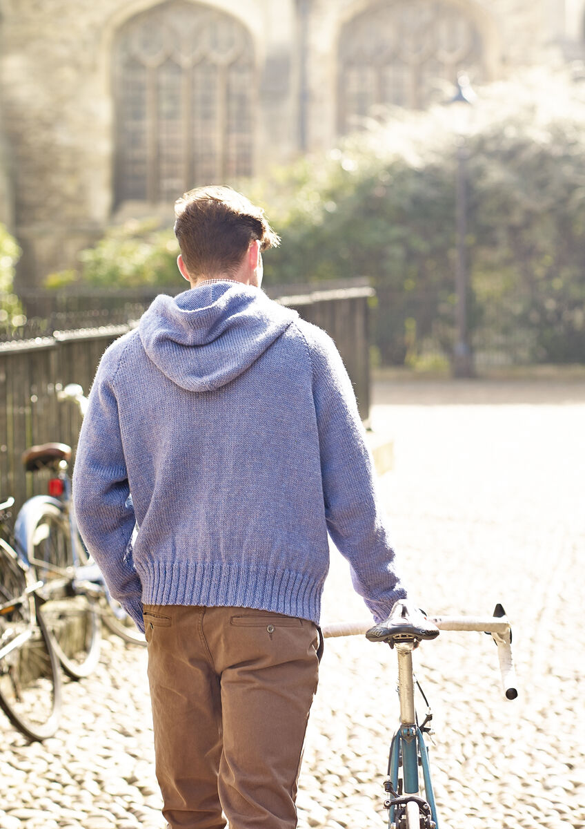Knit this mans stocking stitch hooded sweater from the Simple Shapes Pure Wool Worsted Collection, designed by Martin Storey using the beautiful yarn, Pure Wool Worsted (superwash wool). With full-length raglan sleeves, large front pocket detail and ribbed edgings, this knitting pattern is suitable for the intermediate knitter.