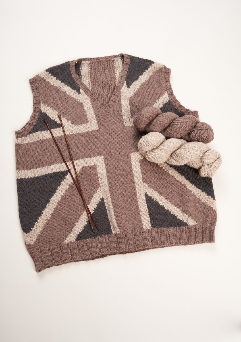 Knit yourself Jubilee-ready with our Union Jack Tank Top! The Union Jack is worked in intarsia throughout and features on both the front and back. Choose to knit this must-have garment in one of two colourways using British yarn Moordale.