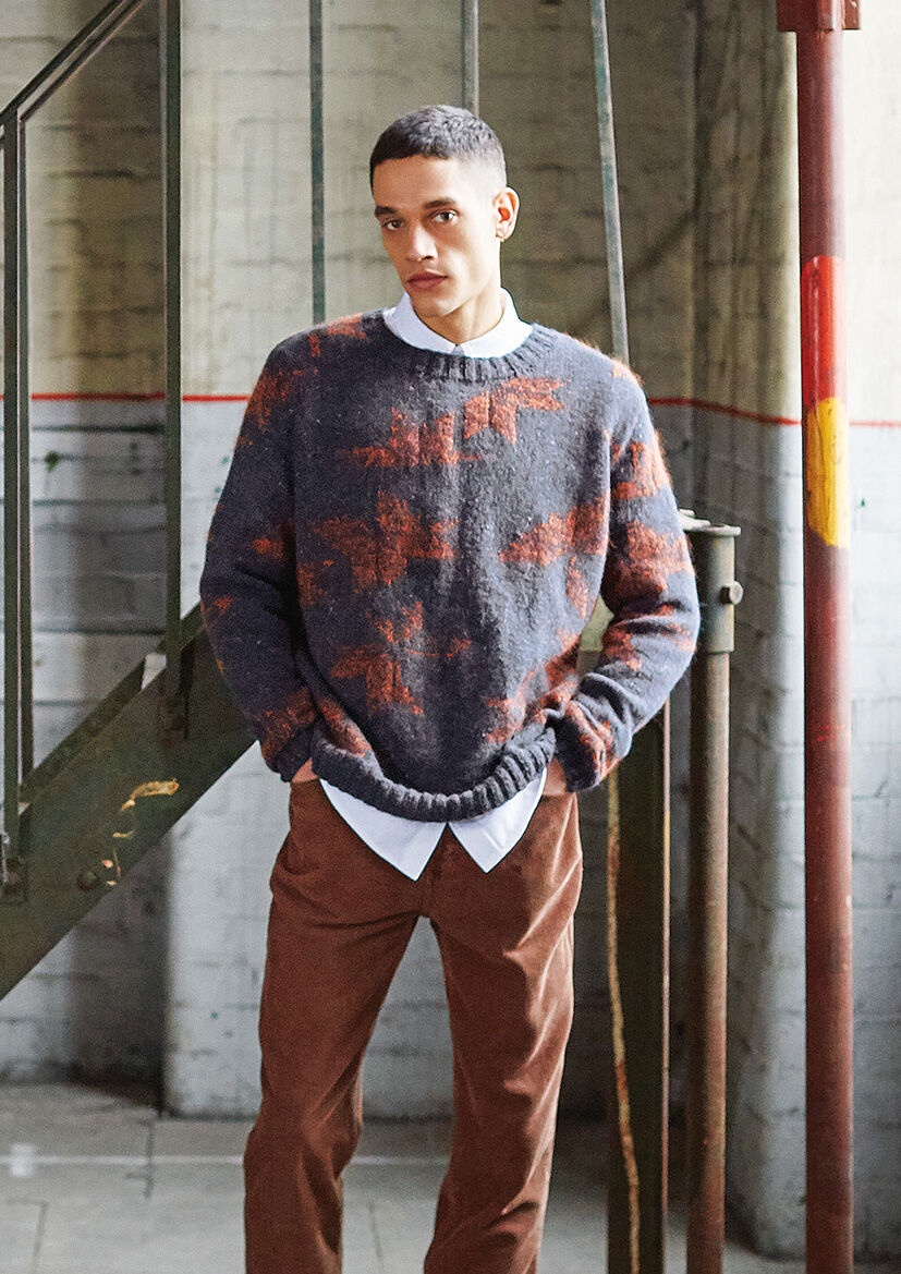 Knitted in Felted Tweed, a blend of 50% wool, 25% alpaca and 25% viscose, and Kidsilk Haze, a mix of 70% mohair and 30% silk, this sweater features a modern Scandinavian motif and was designed by ARNE & CARLOS.