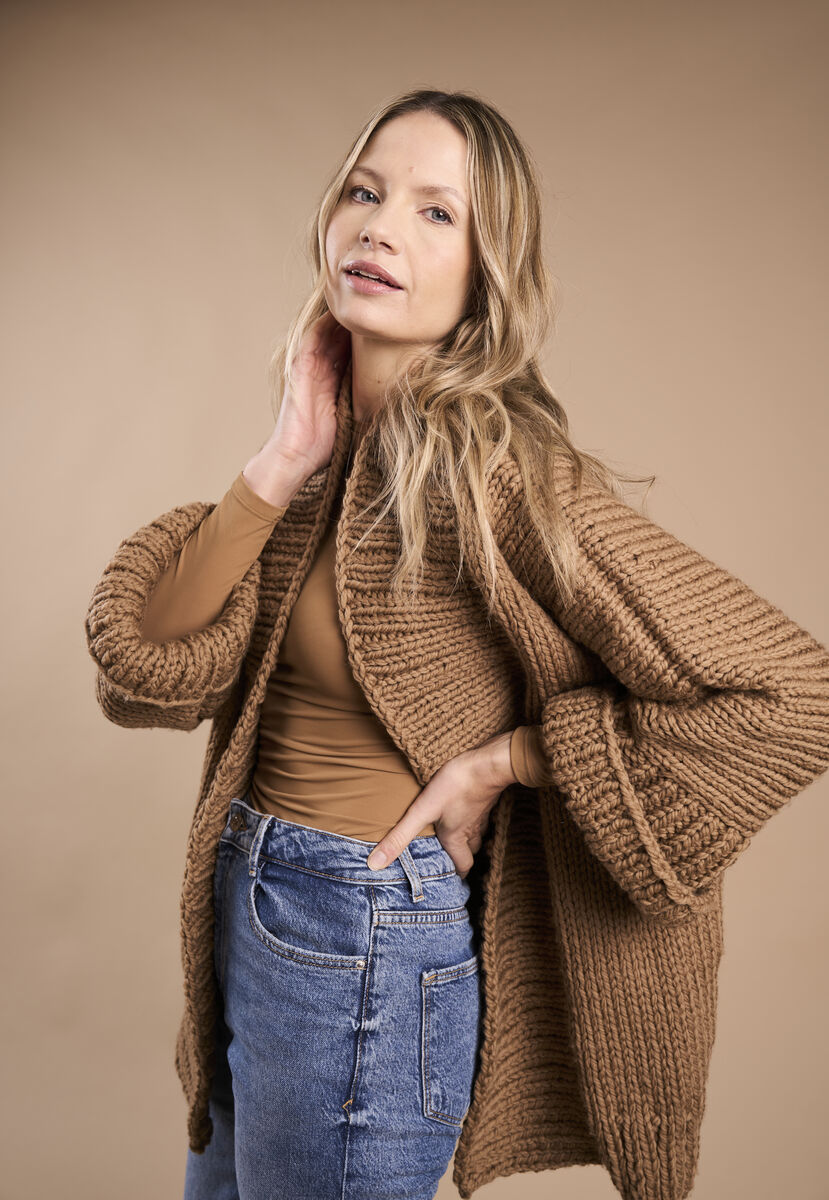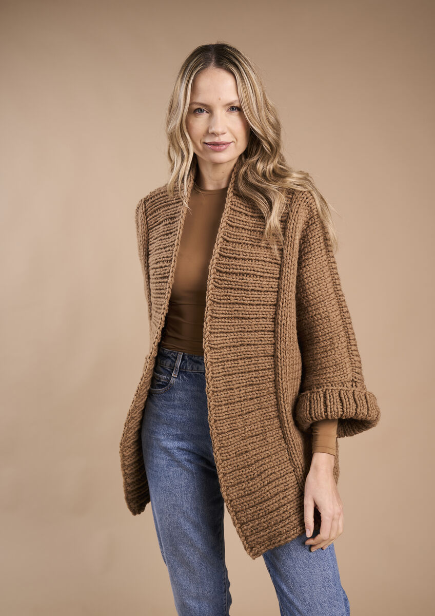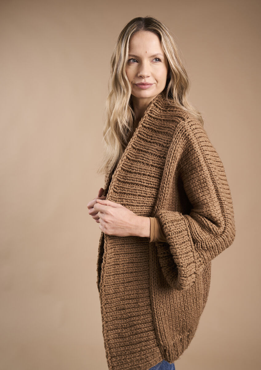 This fabulous, oversized knit oozes autumn winter style. Quick to knit using Big Wool, a pure merino yarn, this warm and cosy cardigan is the ultimate seasonal layer.
