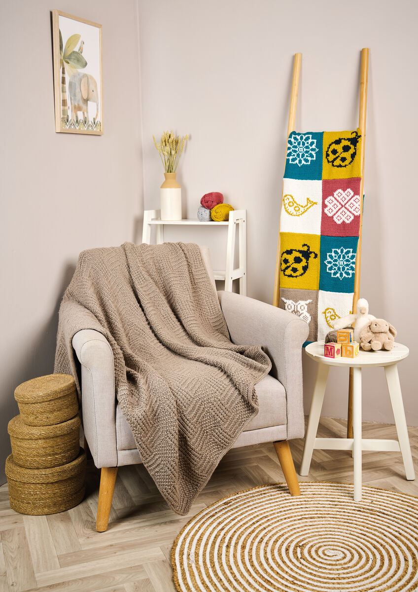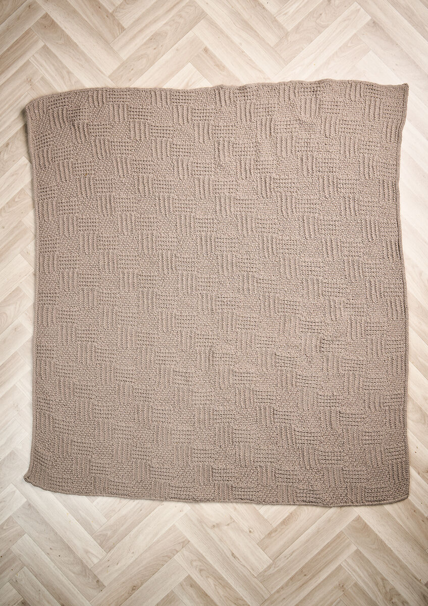This sophisticated single-colour baby blanket has a tactile charm thanks to the all-over knit and purl texture. The edges are neatly finished with an i-cord, giving a rounded finish that’s gentle to the touch.