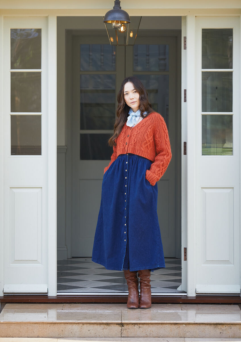This cropped cable cardigan by Lisa Richardson is a punchy one-colour knit. An everyday style classic featuring a deep v-neck, button fastening and relaxed fit. Knitted using one shade of Kid Classic.