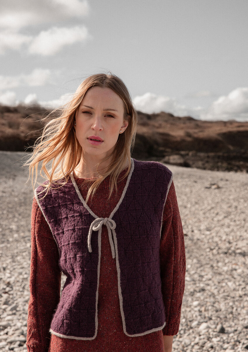 Knitted using Alpaca Soft, Carolina gilet is one element of a complete knitted outfit called ‘Sandwood’ by Georgia Farrell.