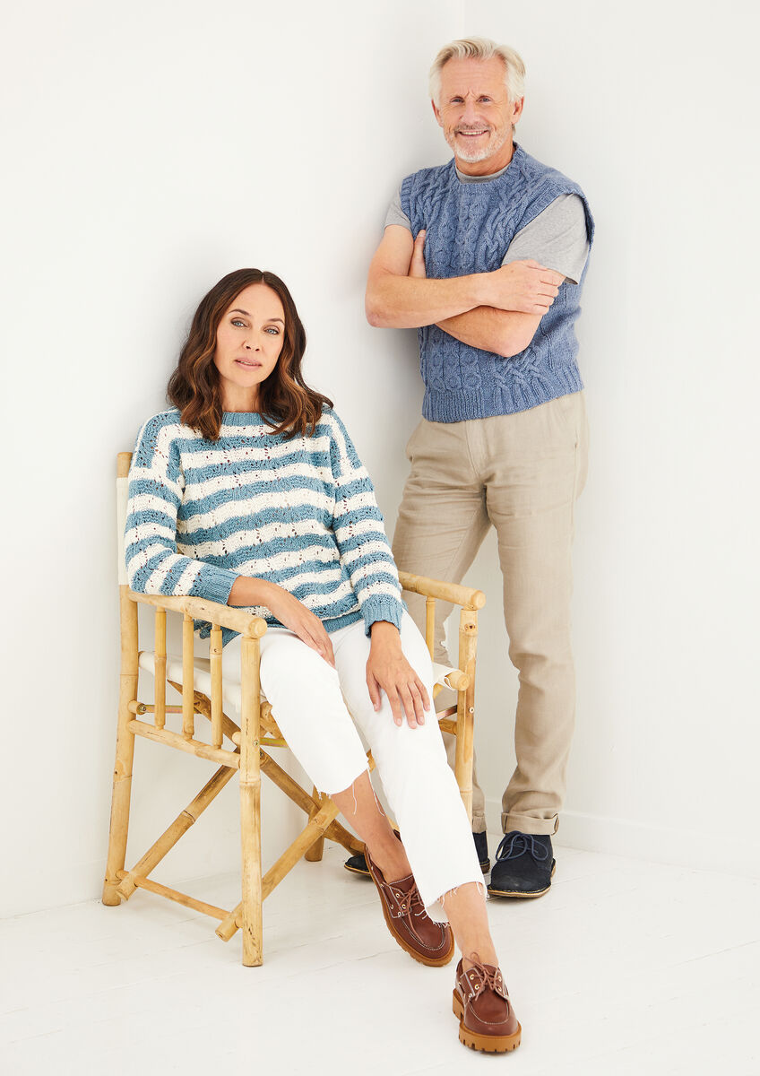 Whether you choose to wear it on its own or as a layering piece, this cabled unisex vest with nautical charm is your go-to piece for effortless spring-to-summer style.