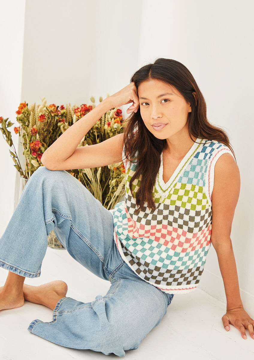 This summer vest makes a bold statement, effortlessly combining charm with modern style. Its striking checkerboard pattern of multicoloured squares gives this summer vest a retro-inspired yet contemporary look.
