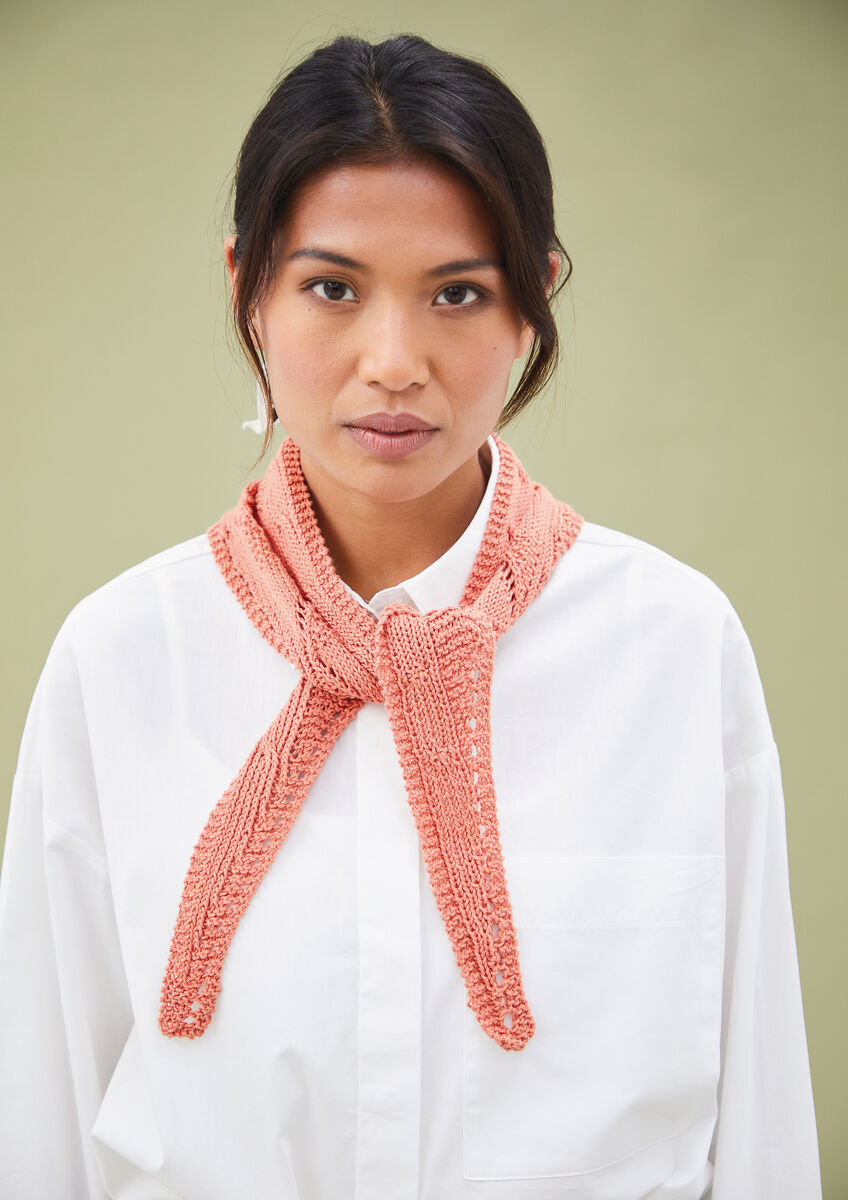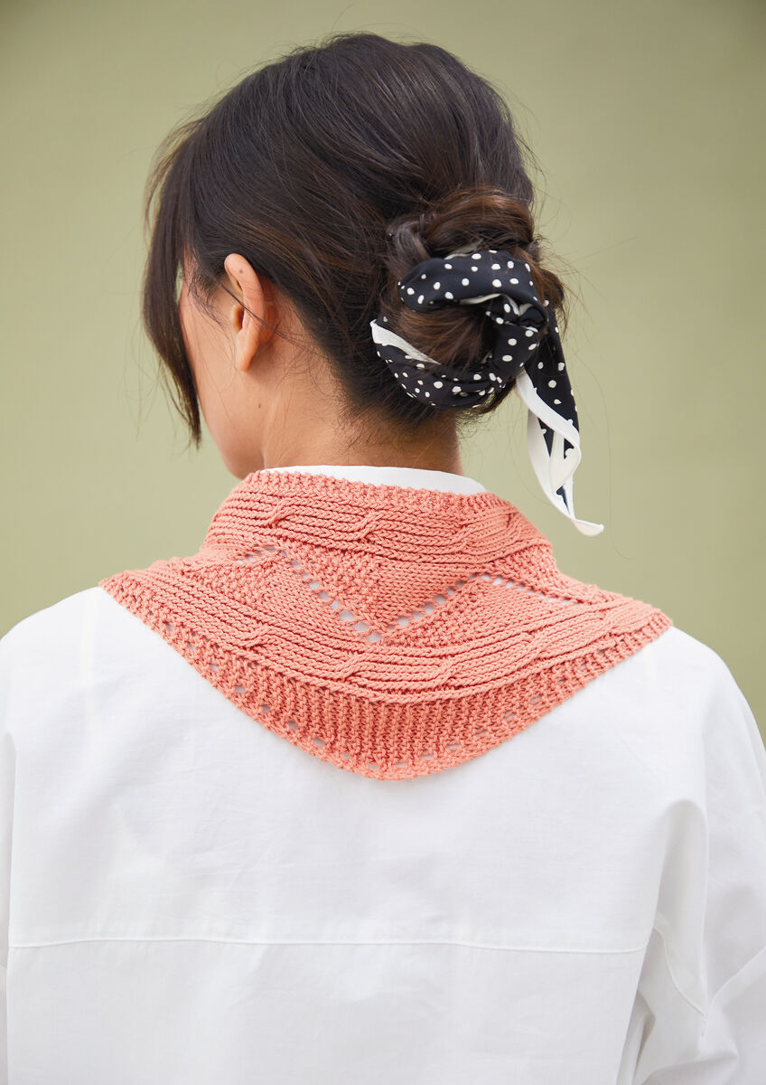 This exquisite neckerchief is an enchanting summer knit. Intricate lace, texture and thoughtful shaping come together to create an elegant and eye-catching accessory.