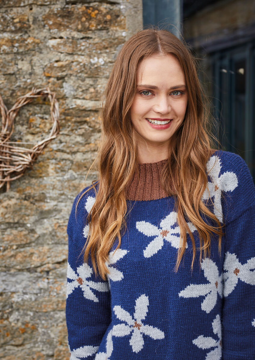 Knit this beautiful jumper from Dee Hardwicke's Colourwork Knits book. The garment has an all over flower motif with ribbed edges and a mock roll neck. The comfy jumper is perfect for keeping you warm on a wintry day.