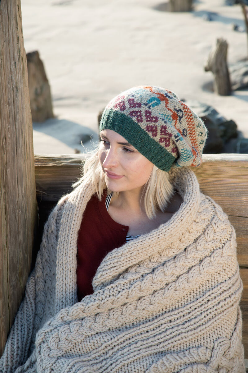 Knit this lovely patterned hat from Martin Storey's "Scandinavian Knits" Book. The garment is worked in Felted Tweed DK and uses six shades to create the lovely motif which covers the hat.