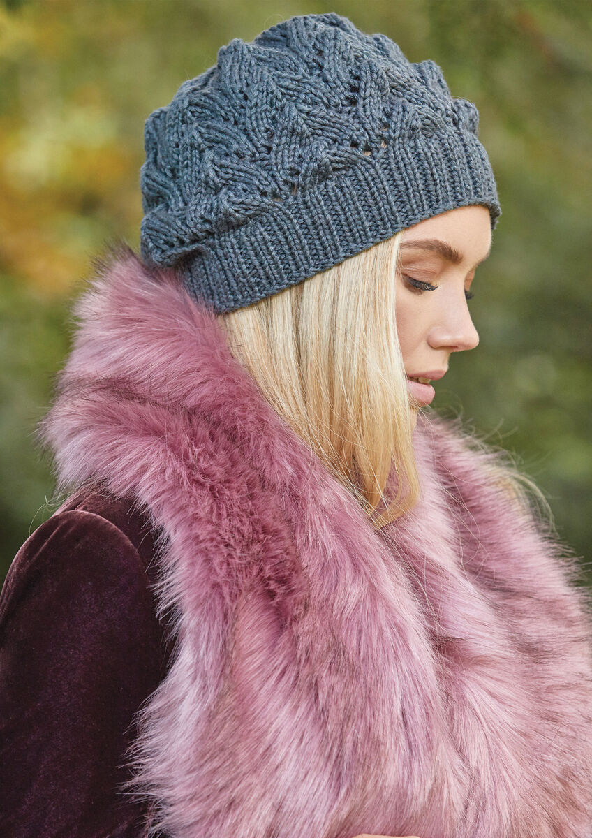 Knit this accessory hat from Closer, a design by Kim Hargreaves using our wonderful soft handle yarn Softyak DK (cotton, yak and nylon.) This pretty pull on hat is a transitional piece that you can wear throughout the year.