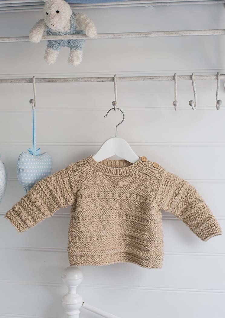 Knit this boys round neck sweater designed by Linda Whaley using our DK weight yarn. With a round neckline and all over textured design, this pattern is suitable for the average knitter.
