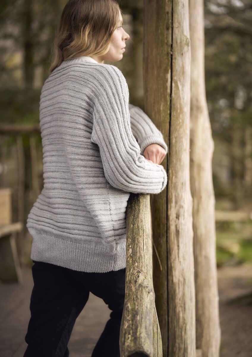 Ce gilet texturé de Quail Studio a un style automnal décontracté. Les rayures en jersey endroit et envers sont bordées de côtes, et les revers des poignets sont un détail supplémentaire confortable. C’est un excellent vêtement pour les mois les plus froids.