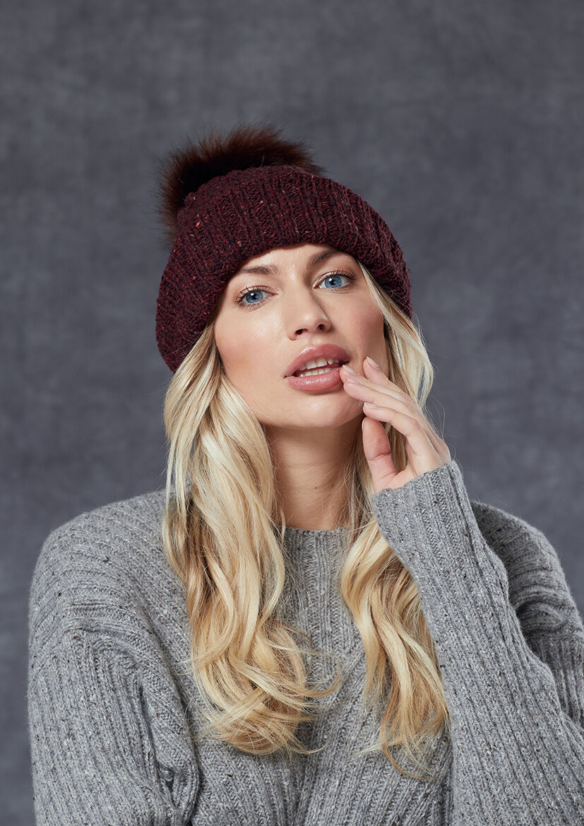 This hat is the perfect winter accessory and features a wide brim and matching pom pom. It was designed by Quail Studio and is knitted in one shade of Cashmere Tweed, a soft blend of 80% wool and 20% cashmere.