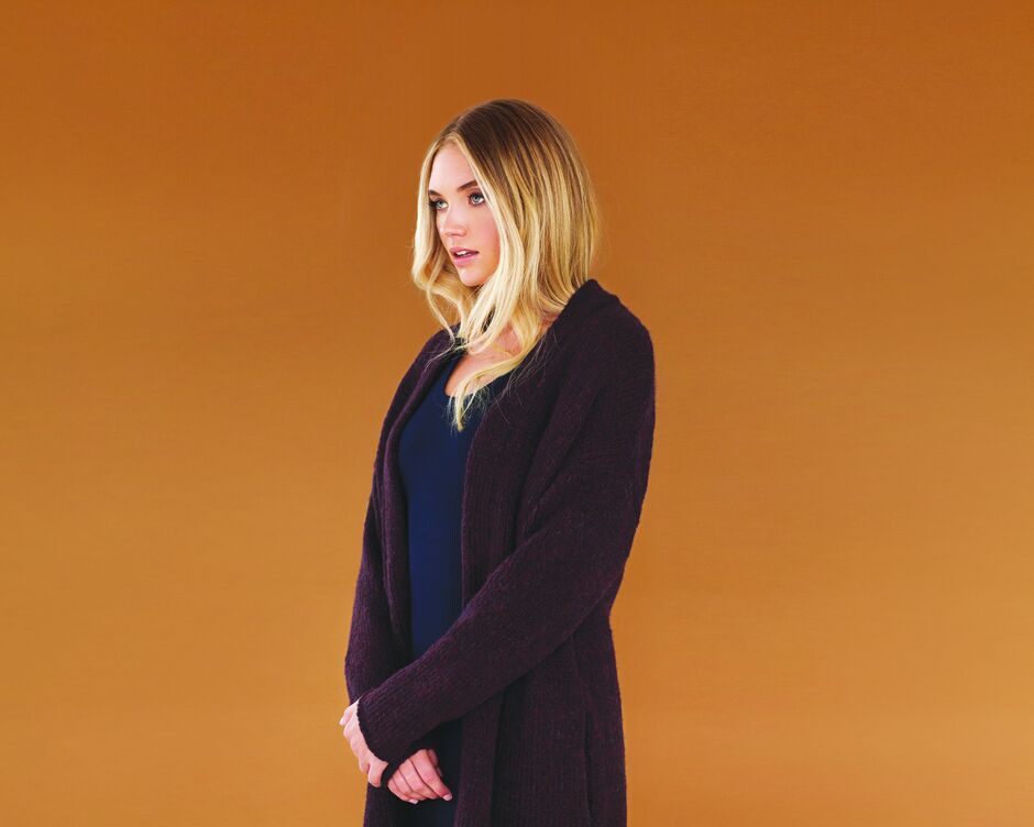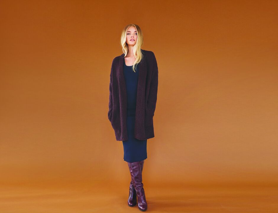 Knit this ladies long length edge to edge cardigan in our super soft Brushed Fleece Yarn. This Garment is perfect for a cold wintry day. This is pattern is only available in Kim Hargreaves book "Bitter". Check your local stockist to buy it!