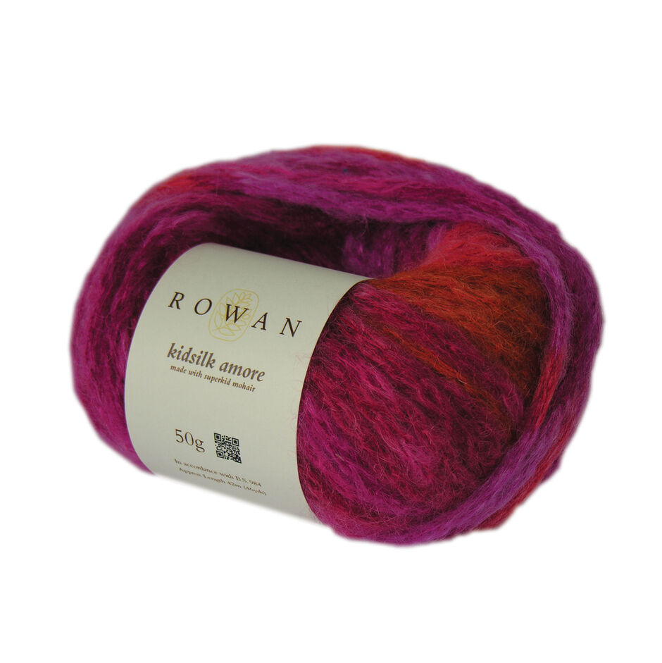 Amore is Rowan's Kidsilk Haze in a multi strand and chainette construction, giving all the luxury of Kidsilk Haze in a heavier weight. Ideal for accessories and small projects. This yarn is discontinued. You may find a suitable substitute yarn from the current range.