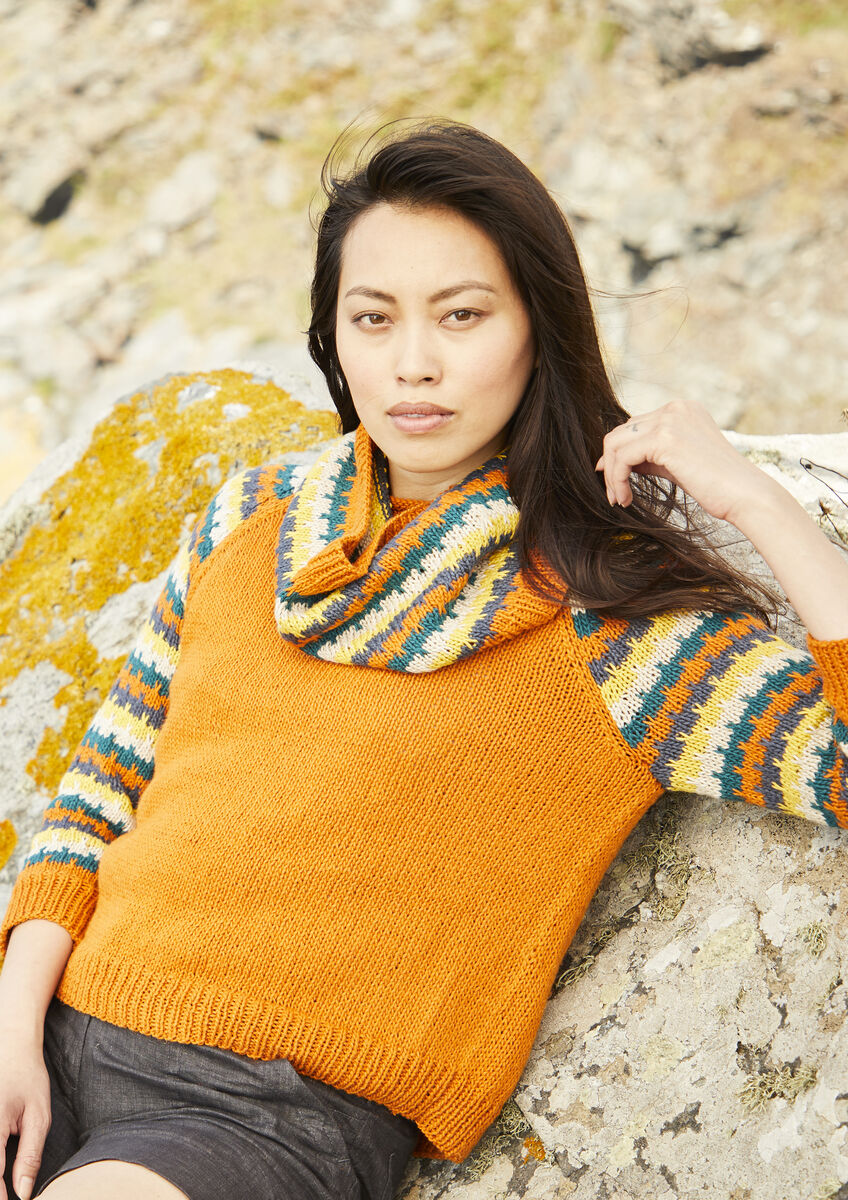 This cute cowl by Georgia Farrell is knitted using Creative Linen. Perfect for summer and with a lovey drape, this accessory is perfect for summer evenings. Pair with Georgia’s matching sweater, Pierre, to complete the look.