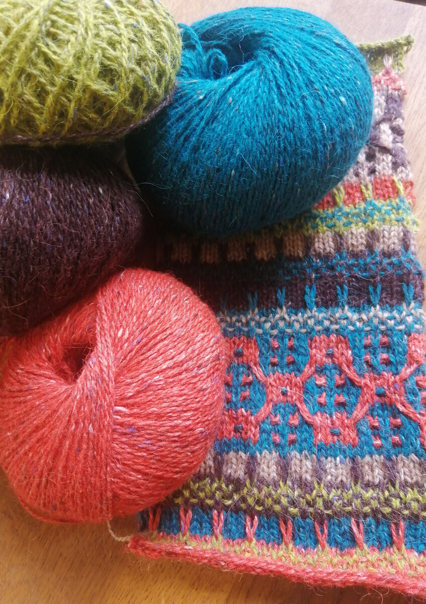 Lisa Richardson's Slipstitch Bag is worked in five shades of Rowan Felted Tweed.